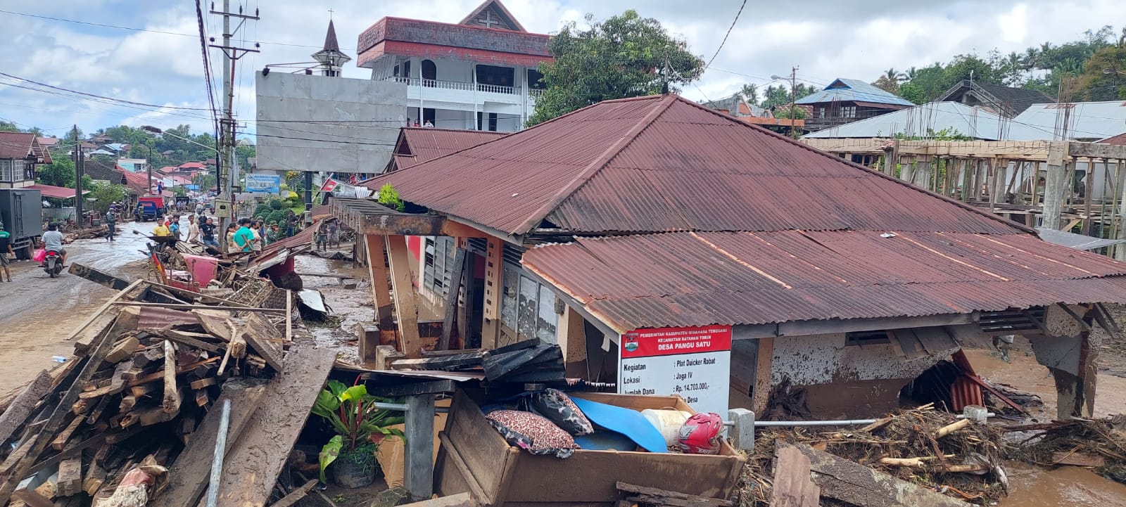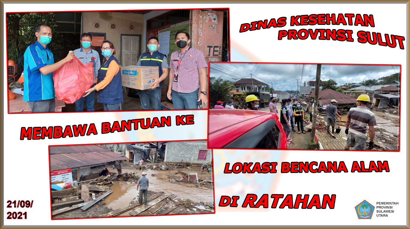 Ratahan - Dinas Kesehatan Daerah Provinsi Sulawesi Utara diwakili oleh Tim Rapid Health Assesment Pusat Krisis Kesehatan Regional IX, mengantarkan bantuan kepada terdampak banjir bandang di Desa Pangu Kecamatan Ratahan Minahasa Tenggara pada hari Selasa 21 September 2021. Dalam kesempatan ini tim juga melakukan analisa dampak bencana bagi kesehatan penduduk.