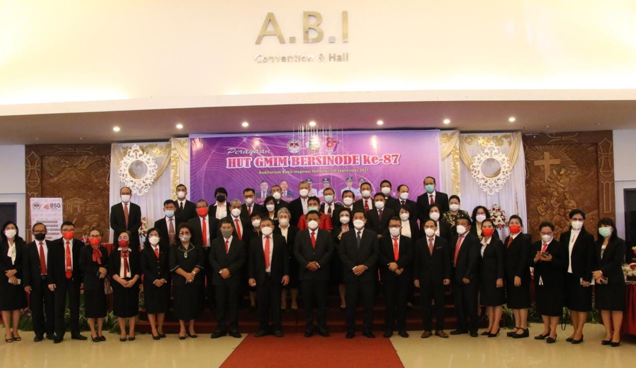 TOMOHON - Sinode GMIM menyelenggarakan kegiatan Perayaan HUT GMIM Bersinode ke-87 dirangkaikan dengan Pelantikan Tim Kerja Penyusunan Rencana Strategis (RESTRA) Program Pelayanan GMIM Periode 2022-2027 yang dilaksanakan di Auditorium Bukit Inspirasi Tomohon (ABI) pada hari Kamis 30 September 2021. Kepala Dinas Kesehatan Daerah Provinsi Sulawesi Utara dr. Debie K.R. Kalalo, MSc.PH turut hadir dalam kegiatan tersebut.