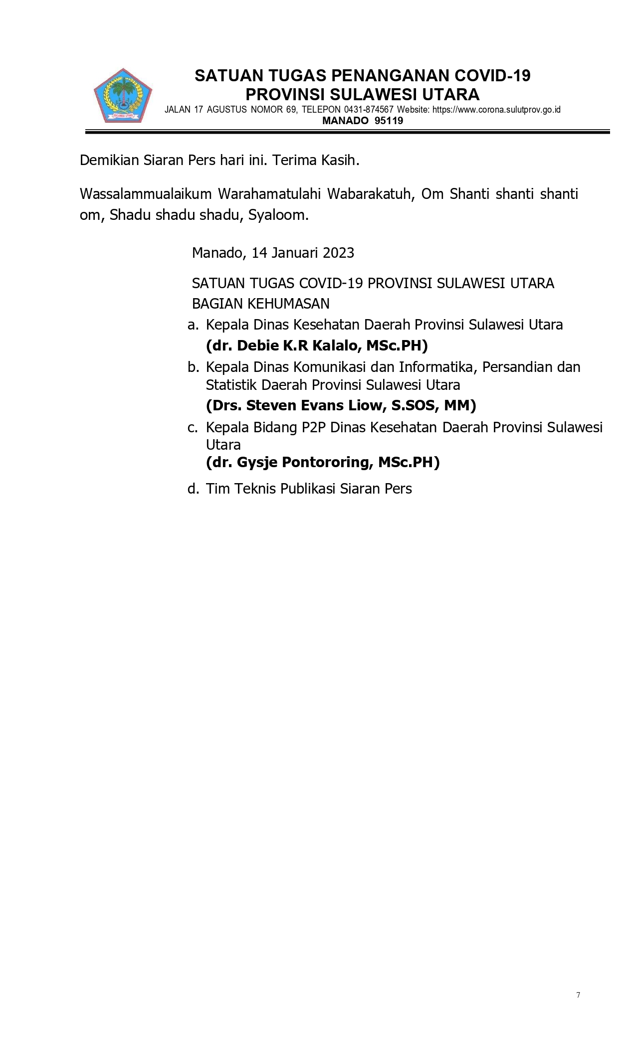 Press Release COVID-19 Sulut