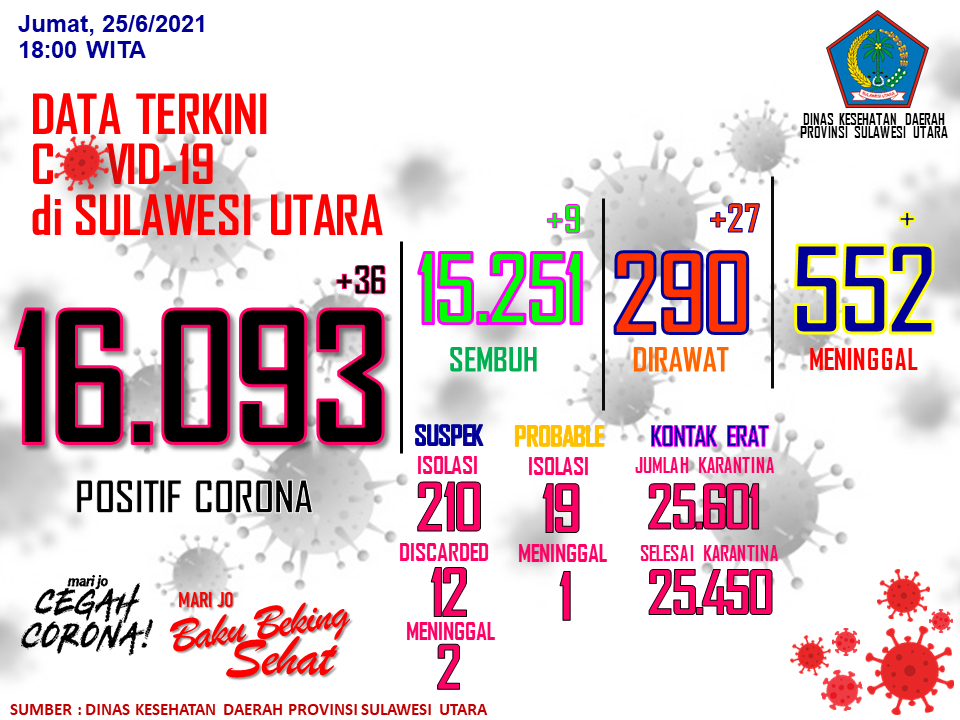 Untuk hari ini Jumat , 25 Juni 2021, kami update pertambahan kasus terkonfirmasi positif sejumlah 36 kasus.