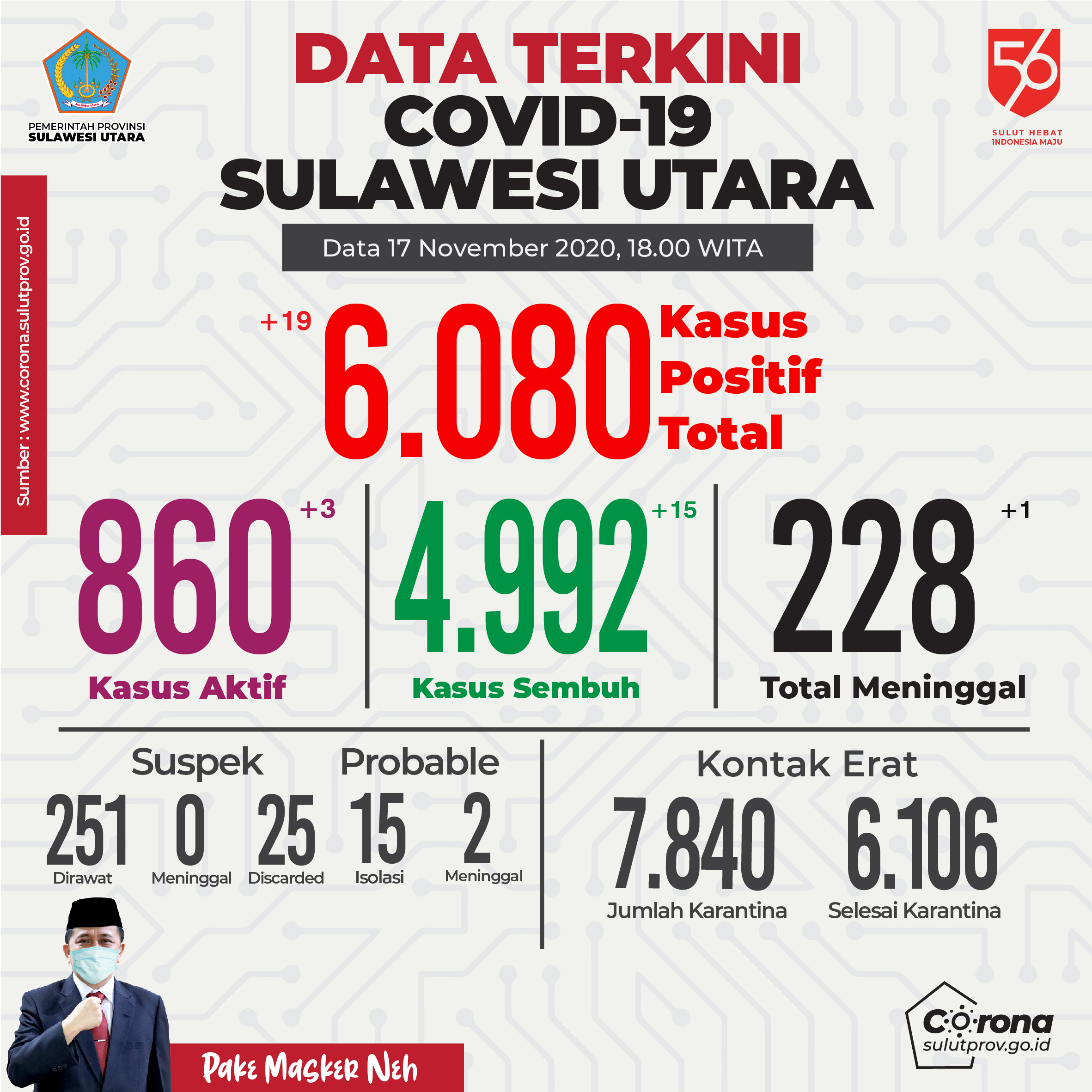 Masyarakat Sulawesi Utara yang kami hormati, Kami akan mengupdate kondisi epidemiologis Covid 19 di Sulawesi Utara hari ini Jumat tanggal 19 Februari 2021.