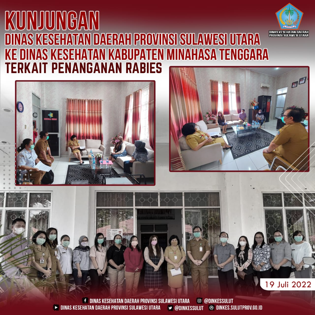 Dalam kunjungan ini, Kepala Dinas Kesehatan Kesehatan Daerah Provinsi bertemu dengan Kepala Dinas Kesehatan Kabupaten Minahasa Tenggara, Sekretaris Dinas, Kepala Bidang P2P Dinkes Mitra, serta petugas terkait, dan berdiskusi tentang penanganan Rabies di Kab. Minahasa Tenggara.