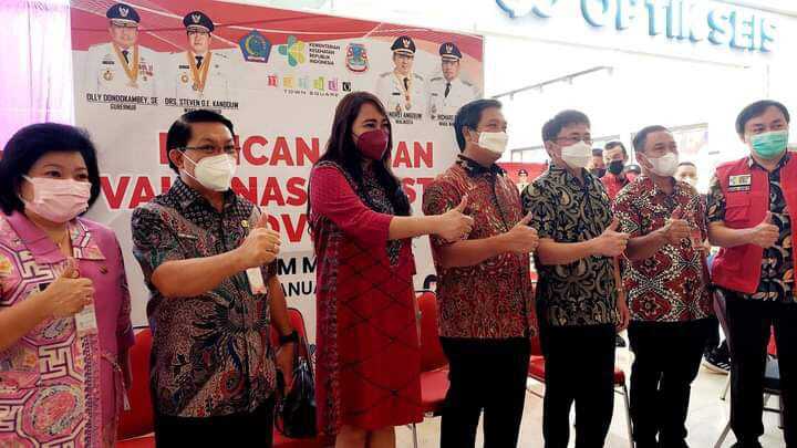 Pemerintah Daerah Provinsi Sulawesi Utara– Launching Vaksinasi Covid-19 ketiga (Booster) Provinsi Sulut dilaksanakan di kota Manado tepatnya di area Pusat Perbelanjaan Mantos 3, dihadiri langsung Wakil Gubernur Sulut Steven Kandouw, didampingi Oleh Walikota Manado Andrei Angouw, Asisten I Setdaprov Sulut Denny Mangala, Kepala Dinas Kesehatan Sulut dr. Debby Kalalo. MSc.PH dan Kepala Dinas P3AD Sulut dr.Devi Kartika Tanos, Kamis (13/01/2022).
